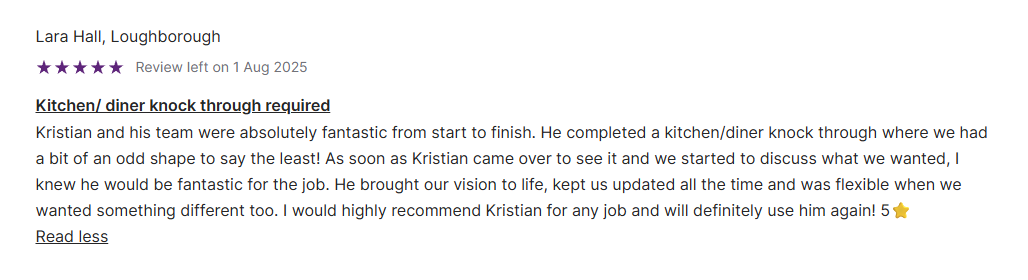 Real feedback from home extensions, conversions, and renovations across Oakham, Leicester, Loughborough & Melton Mowbray.